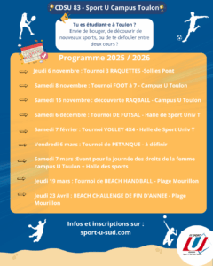 Le Sport U Campus Toulon te propose un programme 2025-2026 plein d’énergie, de fun et de rencontres !